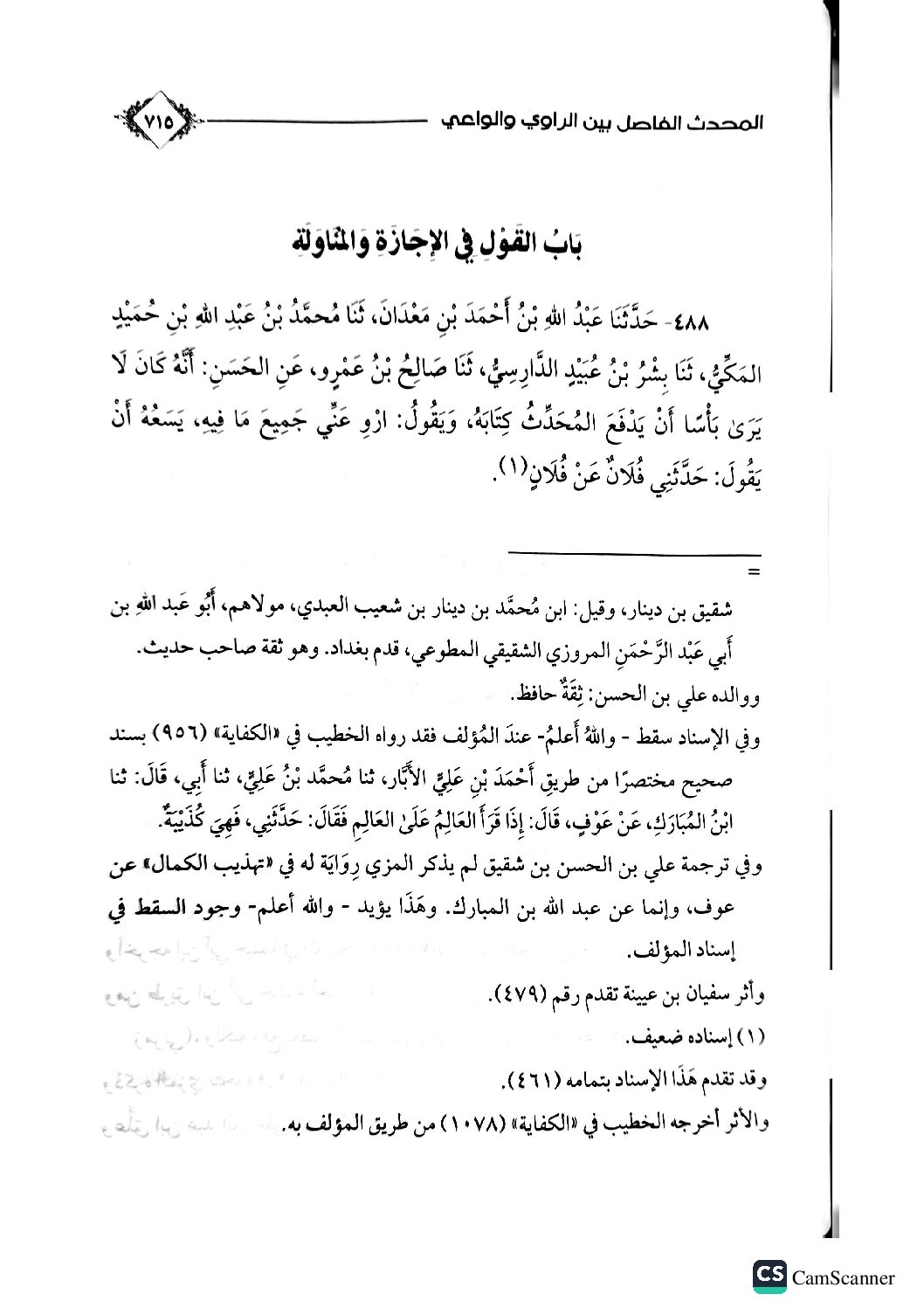 المحدث الفاصل/ ابي محمد الحسن ابن عبد الرحمن الرامهرمزي AL-MUHADITH AL-FASIL