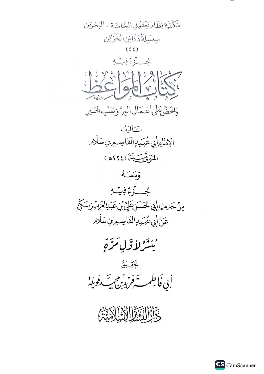 جزء فيه كتاب المواعيظ / ابي عبيد الفاسم ابن سلام JUZ FIHI KITAB MAWAED