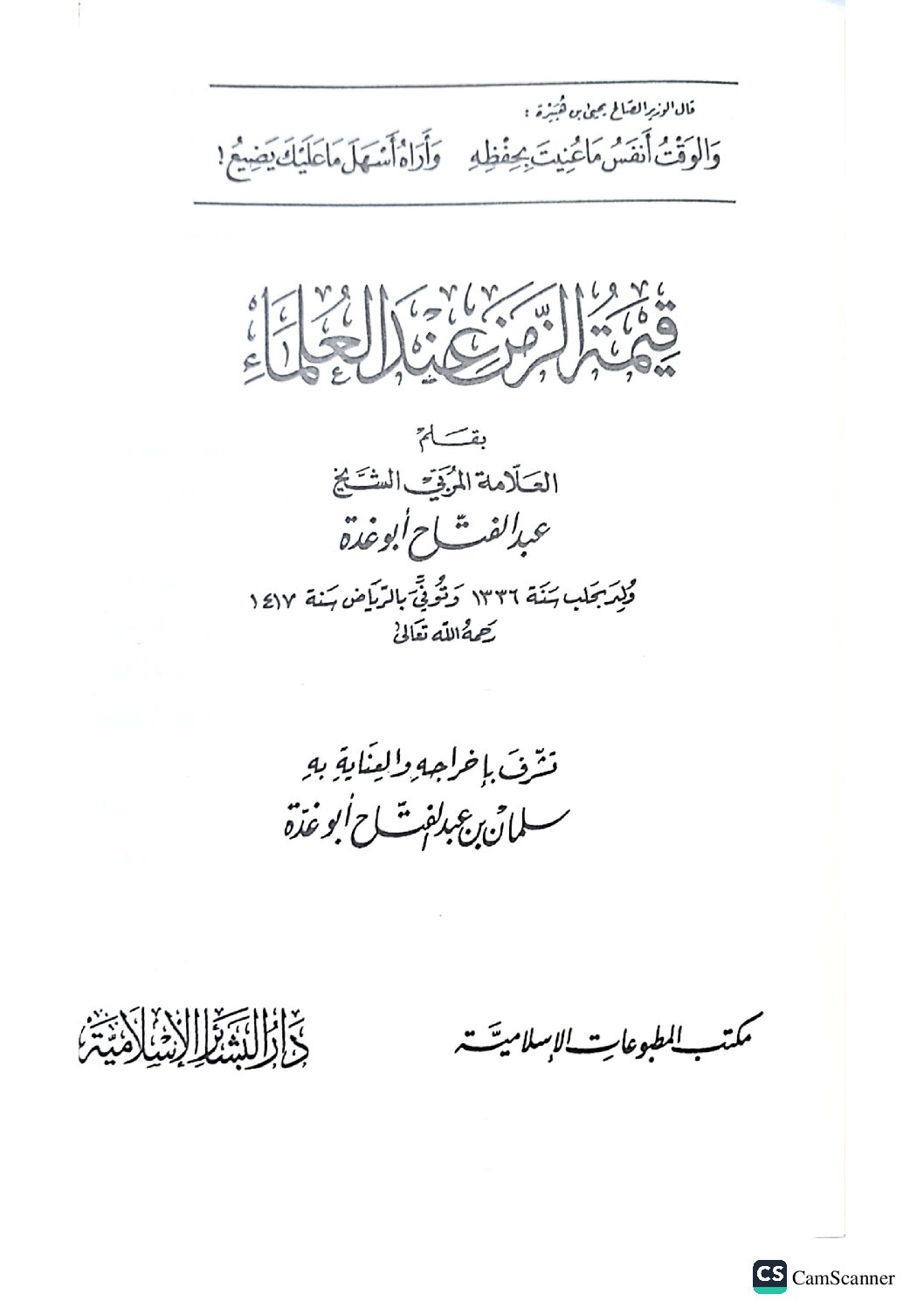 قيمة الزمن عند العلماء / عبد الفتاح ابو غدة QIMAT ZAMAN INDA ULAMA